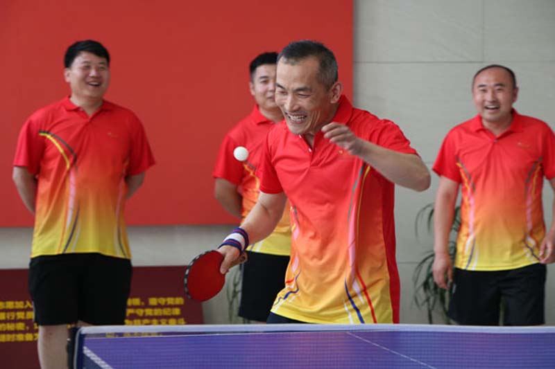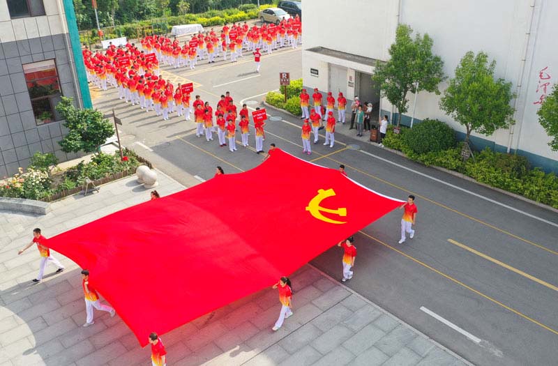 开幕式上,公司10个部门的职工排列整齐的方队,披着朝阳,迈着矫健的步伐步入会场。作为建党100周年的献礼,公司党委书记、董事长朱呈镕精心制作的100平方米的巨幅党旗,由10名职工护卫,在主席台前展示。鲜红的党旗,在阳光下熠熠生辉、光彩夺目,表达了公司全体职工永远热爱党、一心跟党走的赤诚情怀。