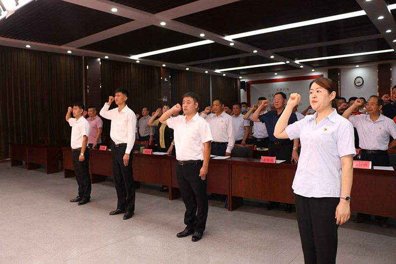 铮铮誓言践忠诚,拳拳初心担使命。在随后举行的新发展党员入党宣誓和其他党员重温入党誓词活动中,由公司党委委员赵秀红同志领誓,销售公司党支部王斌、徐金涛、诸葛祥超等3名新发展党员,面对鲜红的党旗庄严宣誓,公司其他党员重温了入党誓词。