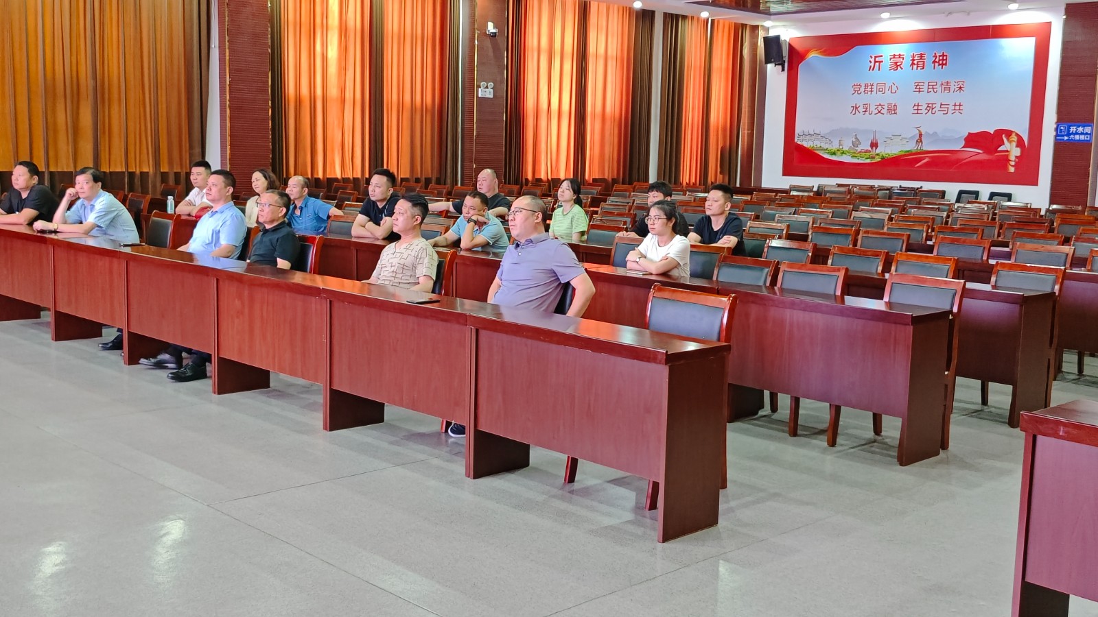 1.7月12日下午,临沂大学商学院党委书记孔霞一行20人冒雨来到红嫂文化博物馆,开展“寻访沂蒙红商弘扬沂蒙精神”调研活动。在红嫂事迹报告厅,一行人认真观看了《沂蒙新红嫂-朱呈镕》宣传专题片。观看结束后,朱呈镕用自己的创业经历向调研团一行人阐释了沂蒙精神对干事创业的作用。随后,一行人参观了红嫂文化博物馆。